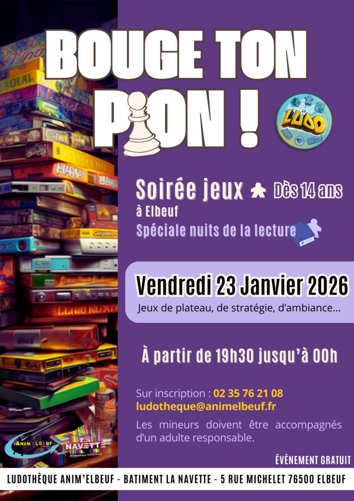 La ludothèque est située dans les locaux de la Navette et travaille en étroite collaboration avec la médiathèque d’Elbeuf. Elle accueille les groupes et les familles pour un moment ludique, convivial et de partage autour du jeu. Elle organise toute l’année des manifestations comme la fête du jeu, halloween, noël à la Ludo et participe à de nombreuses animations proposées par nos partenaires comme Seine d’Été, la Braderie des Commerçants et Elbeuf sur Fête.